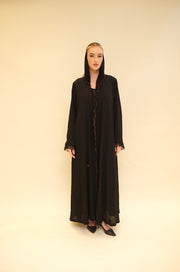 Lightweight georgette in two versatile tones Brown/Black accented with subtle tassel details.