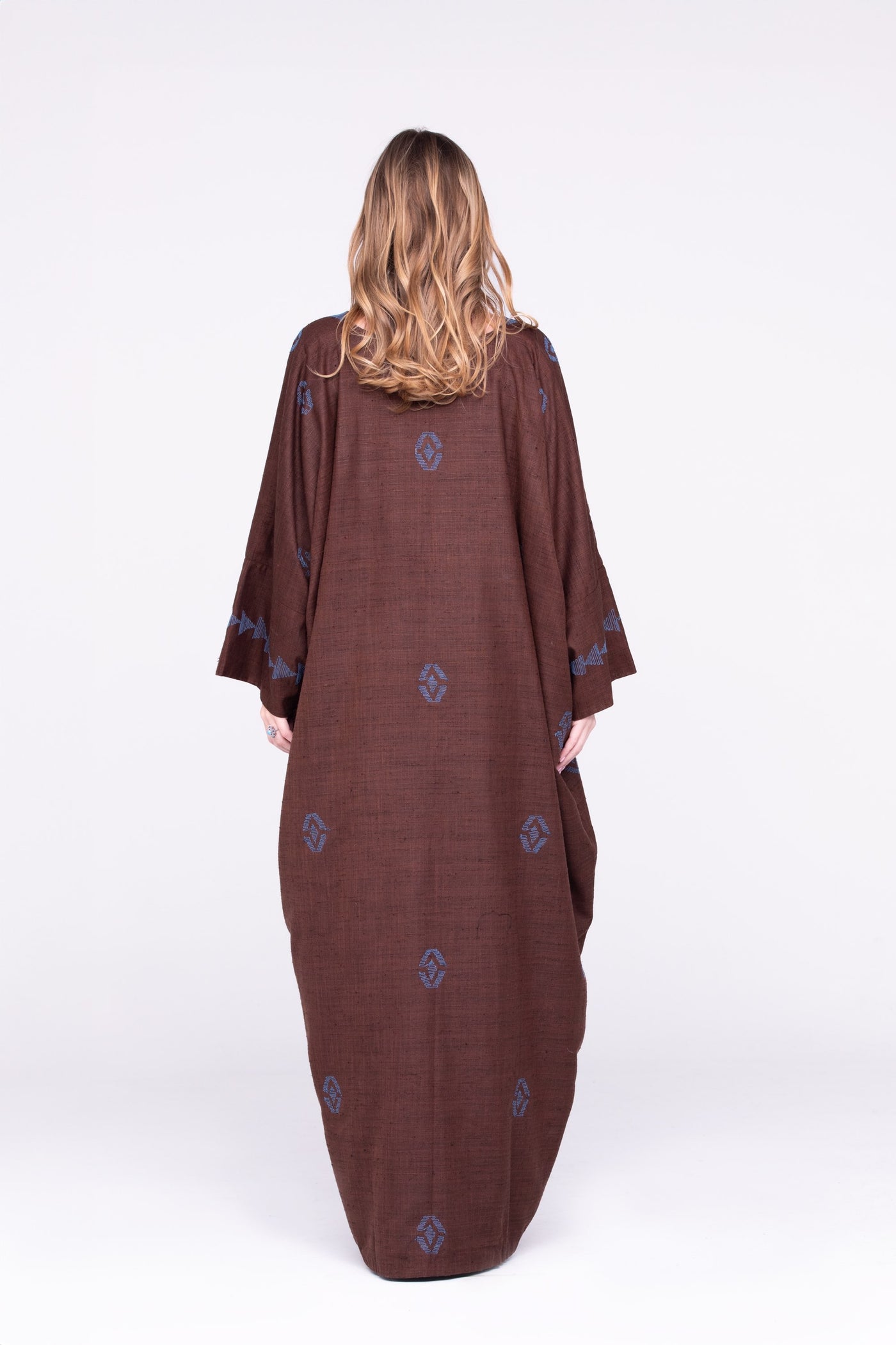 Soft raw silk kaftan with Pink Dori work and silk velvet lining.