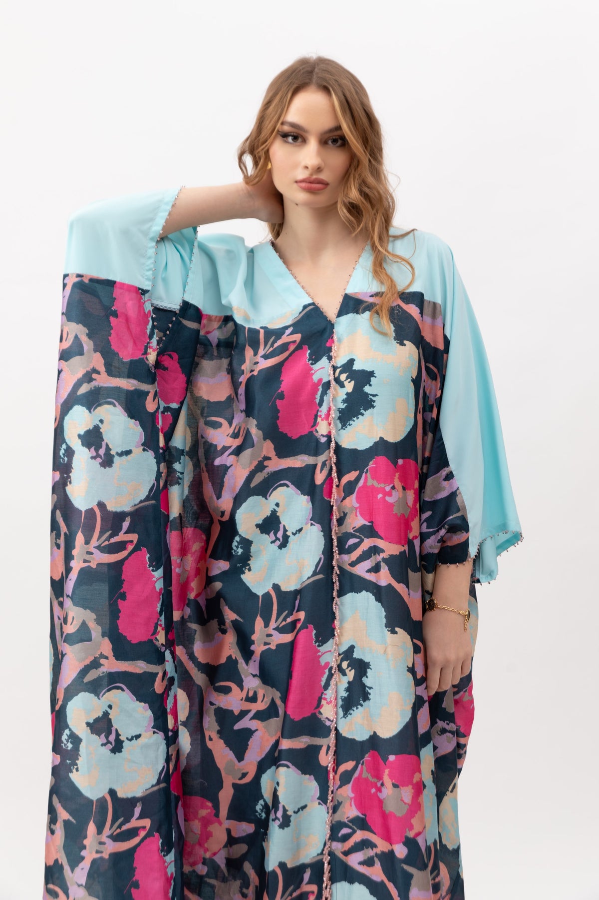Floral print kaftan with tassel details, crafted from soft crepe-cotton for a chic and breezy look.