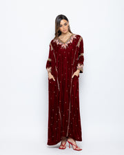 The Deep Red Embroidered Detailed Kaftan is sure to make a statement, embroidery detail on the front and cuffs.