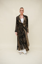 Olive cotton blend abaya in a unique asymmetrical blazer cut — clean lines with a bold edge.