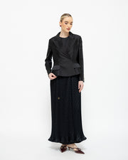 A contemporary take on the traditional abaya, this blazer-style piece is tailored from premium tafta fabric and adorned with pleated lace detailing.