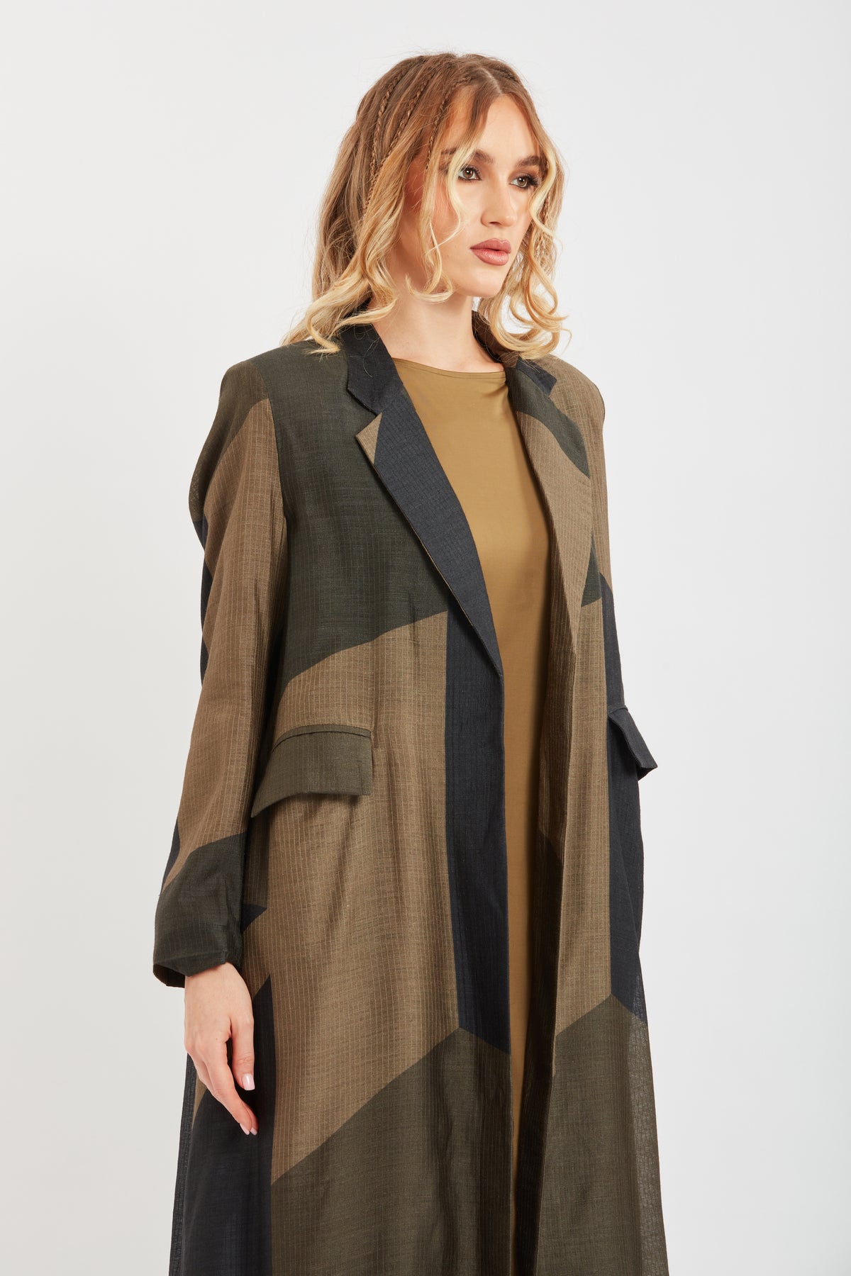 A contemporary cotton-blend blazer featuring bold geometric prints, designed to elevate everyday sophistication with modern flair.