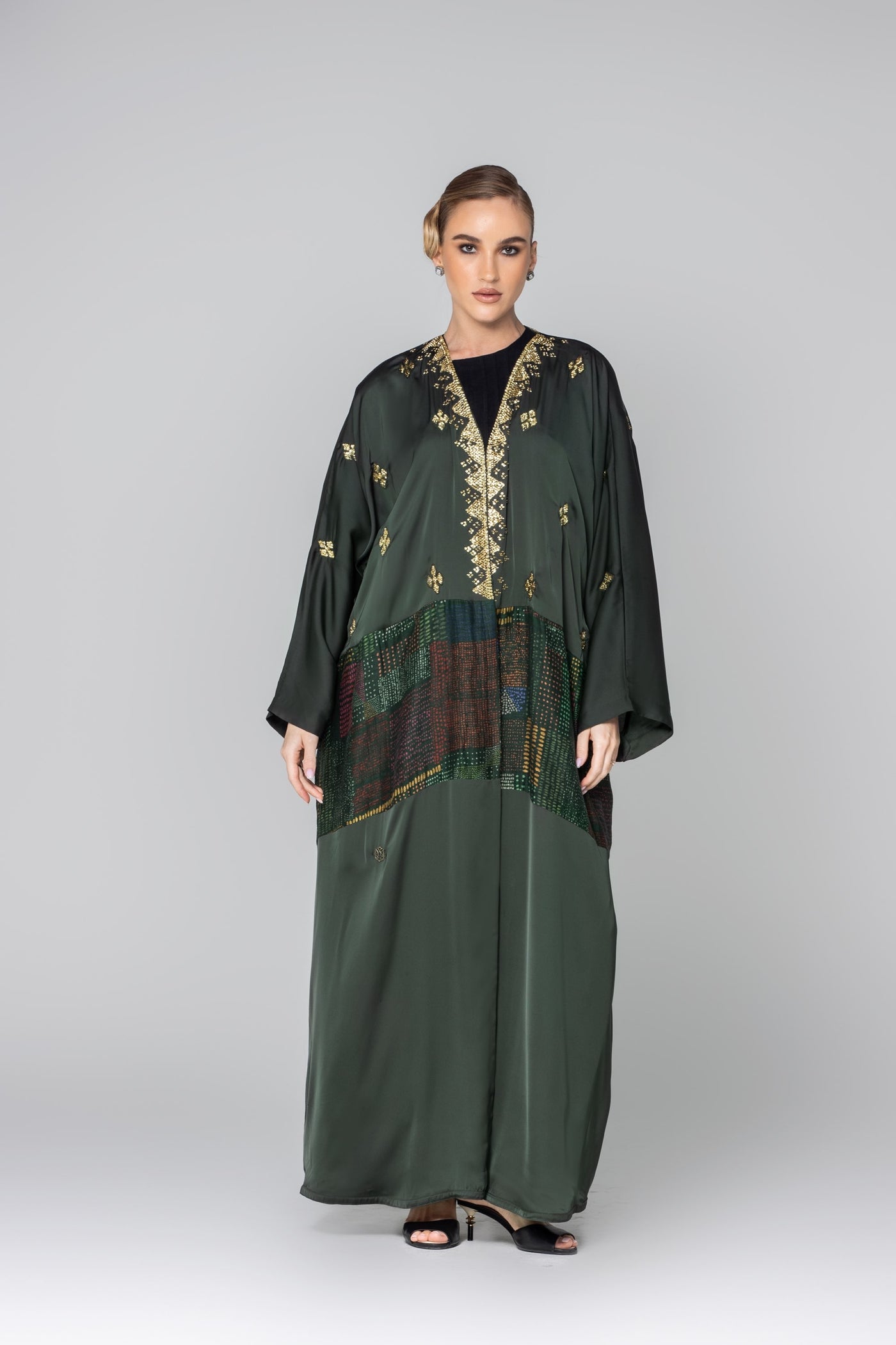 Green Besht with gold nagda embroidery. Elegant and comfortable, perfect for any occasion
