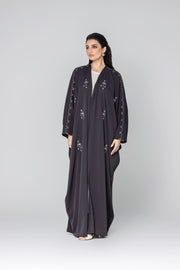 Zari embellishments details abaya. Stylish and refined piece for your wardrobe.